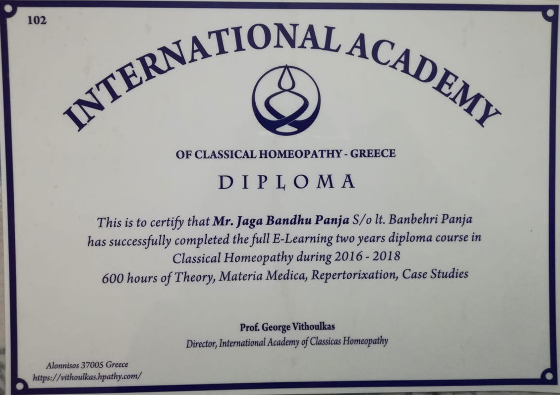 Certified Acu-Therapist and Diploma in Classical Homeopathy